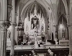 The parish was founded in 1885 and the church was constructed in 1898.[1] The parish was merged with Nativity of the Blessed Virgin Mary church in 2016, and the two churches located one block away from each other operated until Our Lady Help of Christians was closed on June 4, 2018. Leading up to its closure, the Church struggled financially, with under 300 attendees per weekend and substantial deferred maintenance costs.[2] As of 2021, the church building remains vacant but intact. Additional vacant components of the property include a rectory, convent, and school building.