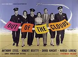 Out of the Clouds is a 1955 British drama film directed by Basil Dearden and starring Anthony Steel, Robert Beatty and James Robertson Justice.[2] It was loosely based on the novel The Springboard by John Fores and was adapted by Rex Reinits, with a screenplay by Michael Relph and John Eldridge.