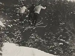 Some students' unions began planning wilderness outings in the late nineteenth century in response to the early American conservation movement.[1] In 1909, students at New Hampshire's Dartmouth College organized a club around such outings, with a particular emphasis on winter sports.[2] National Geographic published an article[3] about a Dartmouth Outing Club skiing trip in 1920, and the following spring saw a 300 percent increase in applications for admission to the college.[4] By 1932, 14 outing clubs had been founded at universities in the northeastern United States and southeastern Canada. These 14 clubs formed the Intercollegiate Outing Club Association (IOCA) to organize multi-club excursions.[5] These clubs were based on the model established at Dartmouth, although similar groups had existed since at least 1888.[2]
