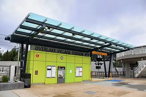 ![]() The entrance to Overlake Village station, with the ramp up to the pedestrian bridge across SR 520 also visible | ||||||||||||||||||||||||||
