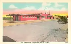 The Owen Sound Railway Station in Owen Sound, Ontario, is a former Canadian Pacific Railway station. The current structure is a Designated Heritage Railway Station built in International Style between 1946 and 1947. The station is located in the port area of the city of Owen Sound, between the docks and the railway tracks.[1]