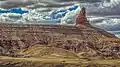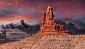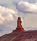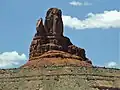Owl Rock is a 6,547-foot (1,996 m) elevation sandstone summit located south of Monument Valley, in northeast Arizona. It is situated 7 miles (11 km) north of Kayenta on Navajo Nation land, and can be seen from Highway 163 perched on the east edge of Tyende Mesa, where it towers 1,000 feet (300 meters) above the surrounding terrain. Its nearest higher neighbor is Agathla Peak, 1.4 miles (2.3 km) to the east-northeast, on the opposite side of this highway. Precipitation runoff from this feature drains into El Capitan Wash, which is part of the San Juan River drainage basin. The first ascent of Owl Rock was made in April 1966 by Fred Beckey and Harvey Carter by climbing cracks on the west face, and then bolting up a smooth south nose to the summit. They employed 20 pitons and 14 bolts on this route called Warpath.[4][5] The descriptive name stems from its uncanny resemblance to an owl when viewed from the east. This feature is known as Bee 'Adizí in Navajo language meaning "spindle", and this sacred place is considered to be a spindle left behind by the Holy People. A newer name for it is Tsé Ts'óózí, meaning "Slim Rock".[6]
