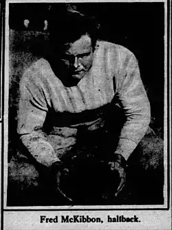 Fred Russell dubbed the 1924 season "the most eventful season in the history of Vanderbilt football."[3] In a 13 to 0 victory over Auburn in 1924, McKibbon completed a pass run in for a touchdown by Hek Wakefield.[4] McKibbon was a starter that year for the 16 to 6 win over Minnesota, Vanderbilt's first ever win over a Western school. He threw a touchdown to Gil Reese in the game.[5] "It was the best coached team we saw this year," said the Minnesota newspapermen.[3] One account reads "Fred McKibbon left Minneapolis dizzy with his crafty timing of aerial shots."[6]