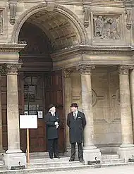 The Oxford University Police, or Oxford University Constables (popularly known as Bulldogs or Bullers), was the private police force of the University of Oxford between 1829 and 2003. They carried warrant cards and were empowered to act as police officers within the university precincts and within areas of Oxford within four miles of any university building.[1][2] As of 2001, the force existed as a private constabulary (a non-Home Office police force) with 40 sworn constables.[3] They were widely recognised for the bowler hats which formed part of their uniform,[1] and formerly had the duty of patrolling outside the Examination Schools alongside the university proctors, the officials responsible for discipline in the university.[4] They were abolished by the University Council in 2003.[5][6]