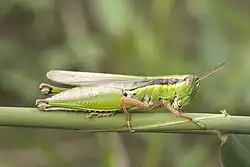 Oxya[1][2] is a genus of grasshoppers (Caelifera: Acrididae) found in Africa and Asia (where some species may be called "rice grasshoppers").