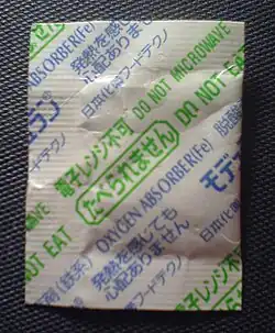 - ^ Braga, L. R.; Sarantópoulos, C. I. G. L.; Peres, L.; Braga, J. W. B. (2010). "Evaluation of absorption kinetics of oxygen scavenger sachets using response surface methodology". Packaging Technology and Science. 23 (6): 351–361. doi:10.1002/pts.905. S2CID 96850090.