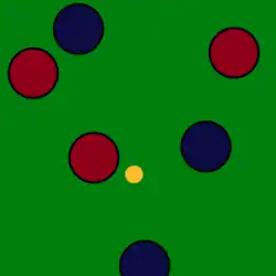 In pétanque, the objective is to score points by positioning one's boules closer to the target ball than those of the opponent after all boules have been thrown. This is achieved by throwing or rolling boules closer to the small target ball, officially called a jack[2] (French: cochonnet),[3] or by hitting the opponents' boules away from the target, while standing inside a circle with both feet on the ground. The game is normally and best played on hard dirt or gravel. It can be played in public areas in parks or in dedicated facilities called boulodromes.