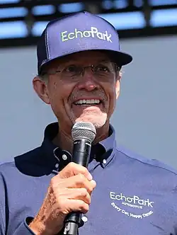 Kyle Eugene Petty (born June 2, 1960) is an American former stock car racing driver and current racing commentator. He is the son of racer Richard Petty, grandson of racer Lee Petty, and father of racer Adam Petty, who was killed in a crash during practice in May 2000.[1] Petty last drove the No. 45 Dodge Charger for Petty Enterprises, where he was CEO; his last race was in 2008.