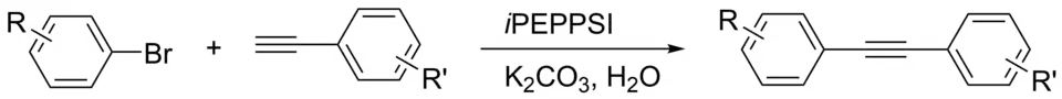 iPEPPSI (internal PEPPSI) type catalyse the copper-free Sonogashira reaction in aqueous solution.[17]