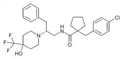 PF-04745637 is a drug which acts as a potent and selective antagonist for the TRPA1 receptor, with an IC50 of 17nM, vs ~3μM at the related TRPV1 and TRPM channels. It has antiinflammatory effects and was developed as a potential treatment for conditions such as atopic dermatitis.[1]