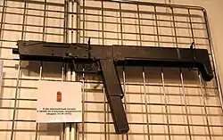The PP-90 is a Russian 9 mm folding submachine gun, developed by the KBP Instrument Design Bureau in Tula for use with special units of the Russian Ministry of Internal Affairs (MVD). It is designed for close quarters combat, particularly engagements that require the weapon to be deployed rapidly in unusual circumstances.[1]