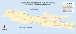 | Track gauge | 1,067 mm (3 ft 6 in) (Most of railway lines) 1,435 mm (4 ft 8+1⁄2 in) (Aceh, Sulawesi, LRT Jabodebek) |