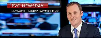 PVO NewsDay (formerly titled PVO NewsHour) was an Australian television news and commentary program which was broadcast 4 times weekly on Sky News Australia.[1] The program is hosted by Peter van Onselen, whose initials in part represent the program's title. The program covers a range of news, politics, sport, weather, finance and entertainment, as well as commentary from van Onselen and other contributors. Occasionally, home viewers are invited on-air to provide opinions as part of a panel discussion.[2]