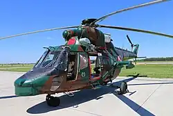 - Military transport variant of the W-3A version used by Czech (11) and Philippine Air Force (8). Some of the Czech helicopters were modified for the emergency medical services. Filipino examples can carry M60 machine gun on each side.[26] Iraqi Air Force returned two VIP-configured Sokół to the intermediary company after cancelling the order.[27]
