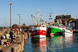 In 1964, the harbour commissioners regained control of the harbour from the British Transport Commission and then made some improvements to it.[27] The harbour comprises a tidal outer harbour that is used by ships and commercial vessels, and a smaller inner harbour that is popular with yachtsmen. This inner harbour is a half tide dock that uses a "gate-flap" to maintain water levels on an ebbing tide, so that the yachts within stay afloat at all stages of the tide.