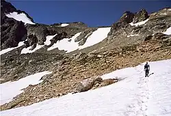The Paintbrush Canyon Trail is a 9.1-mile (14.6 km) long hiking trail in Grand Teton National Park in the U.S. state of Wyoming.[1] Access to the Paintbrush Canyon Trail is from the String Lake trailhead.[2] From there the trail follows the west shore of String Lake and is also known as the String Lake Trail. The Paintbrush Canyon Trail then enters Paintbrush Canyon and becomes steeper and then splits with one trail heading to Holly Lake and the other heading south then west. The trails merge west of Holly Lake and it is a steady altitude gain the last 3.9 miles (6.3 km) to Paintbrush Divide. The east approach to Paintbrush Divide is steep and may require the use of an ice axe through July.[3] There are two camping zones within Paintbrush Canyon and one designated campsite at Holly Lake which are available with a permit.[4] There is a popular loop trail which includes the Paintbrush Canyon Trail, Lake Solitude Trail and Cascade Canyon Trail which spans a distance of 19 mi (31 km) and has a total elevation gain of 4,900 ft (1,500 m).[3]