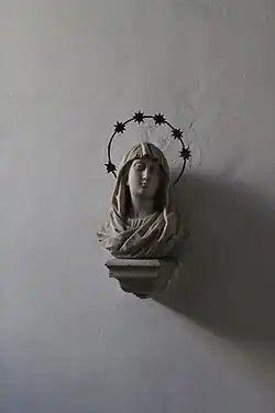 At the center of the main staircase there is the bust of the Virgin Mary attributed to Antonio Bonazza, also from the convent of the Fathers Filippini.