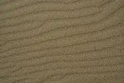 Aeolian placers are valuable minerals found in arid regions freed from their source rock by wind actions.[5] Wind erosion leaves a cement like substance in which material like gold are found. Wind action blows sand and dirt away leaving the deposits close to the surface.[6] Historically, aeolian placers have been mined by hand with simple tools by miners due to the proximity to the surface, and small concentration.[4]