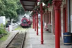 A 4 ft 8+1⁄2 in (1,435 mm) standard gauge railway has previously operated around the perimeter of the museum site. A Victorian-style station was re-constructed using surviving elements of Snow Hill railway station, St Helier, and officially opened on Liberation Day 1996 by Senator Dick Shenton. More recently, a lean-to shed has been constructed over the main running line, and adjacent to the exhibition hall, to house the standard gauge service train. The railway usually operated on Thursdays when the museum is open, and visitors were able to purchase travel tickets to ride on the train. A ride consisted of two circuits of the railway, and the duration of the journey was approximately ten minutes. Passengers were conveyed in two restored Victorian railway carriages, originally built and operated by the North London Railway in England. The two carriages were discovered at Stratford in London, and were transferred to the Pallot museum in 1989 for restoration. Their original wheels had not survived, but were replaced from the Woodham Brothers scrapyard at Barry Docks in Wales.