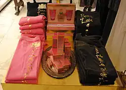 Juicy Couture is an American luxury casualwear and dress clothing brand based in Arleta, Los Angeles, California. Best known for their velour tracksuits which became a luxury staple in the 2000s,[2][3] the company was founded by Pamela Skaist-Levy and Gela Nash-Taylor in 1997[4] and was later purchased by the Liz Claiborne fashion company in 2003. Juicy Couture has turned into a global seller with their velour tracksuits and other fashions that span clothing, denim, handbags, shoes, intimates, swimwear, fragrance (the most famous are the eponymous Juicy Couture and Viva La Juicy[5]), accessories, sunglasses, yoga, petwear, and babywear.[6]