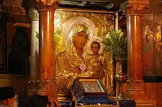 The Panagia Ierosolymitissa icon (Greek: Παναγία Ιεροσολυμίτισσα) or the All-Holy Lady of Jerusalem icon of the Mother of God is an acheiropoieton located in the Tomb of Mary in Gethsemane in Jerusalem. The icon is considered by Orthodox Christians to be the patroness of Jerusalem.[1] Although occasionally confused, the Panagia Ierosolymitissa icon is distinct from the Jerusalem Icon of the Mother of God.
