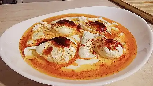 {{cite web}}: CS1 maint: multiple names: authors list (link) - ^ "Velvety Turkish Poached Eggs with Yogurt Recipe (Cilbir)". 2023-03-11. Retrieved 2025-05-05.