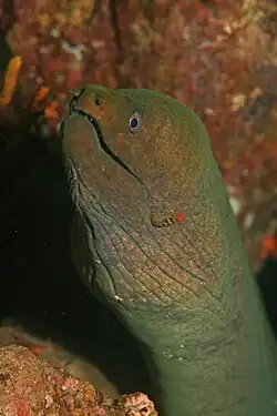 The panamic green moray eel (Gymnothorax castaneus) is a large moray eel in the Pacific.[2] Common names also include chestnut moray eel.