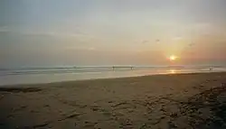 On either side to the east and to the west of Pangandaran village and the National Park isthmus are two beaches of volcanic black sand.[2]