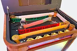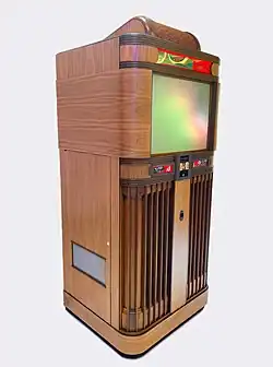 The Panoram is a coin-operated jukebox produced by the Mills Novelty Company of Chicago that played short musical films known as soundies, historic precursors to the modern music video. Reaching their greatest popularity in the United States during the 1940s, soundies featured both audio and video, with Panorams offering multiple selections of a constantly changing rotation of shorts. In all, over 1,850 soundies were made,[1] and approximately 5,000 Panorams were built before their end of production in the late 1940s. [2]