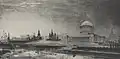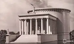The decision to build the Pantheon was taken by the Central Committee of the CPSU and Council of Ministers in a joint decision of March 6, 1953, the day following Joseph Stalin's death.[1] It was decided that the Pantheon would be built in Moscow, but its location was not further specified. A likely location would probably have been opposite the Kremlin, on the Sophie quay by the Moscow River.[2] The project was partly inspired by the Panthéon in Paris, and the idea was to transfer all the remains buried at the Kremlin Wall Necropolis,[3] and convert the Lenin Mausoleum into a monumental tribune overlooking Red Square. According to the decision, the Pantheon would be accessible to broad masses of visitors.