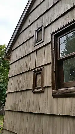 Certain foods, such as butter, eggs, and milk, need to be kept cool.[7] Before modern refrigeration was available, iceboxes were popular.[8] However, the problem with an icebox was that the cabinet housing was large, but the actual refrigerated space was relatively small. A clever and innovative solution was invented, the "cold pantry", sometimes called a "California cooler."[9] The cold pantry usually consisted of a cabinet or cupboard with wooden-slat shelves for air circulation. An opening near the top vented to the outside, either through the roof or high out the wall. A second opening near the bottom vented also to the outside, but low near the ground and usually on the north side of the house, where the air was cooler. As the air in the pantry warmed, it rose, escaping through the upper vent. This in turn drew cooler air in from the lower vent, providing constant circulation of cooler air. In the summertime, the temperature in the cold pantry would usually hover several degrees lower than the ambient temperature in the house, while in the wintertime, the temperature in the cold pantry would be considerably lower than that in the house.