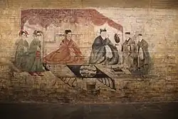 ![]() Men and women dressed in jiaolingpao (cross-collar robe), Han Tomb Mural, Luoyang | |||||||||||