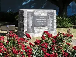 In the 1920s the residents wanted a fitting memorial to the fallen soldiers of World War I. Duly the Memorial Hall and Library (pictured above) was built and opened in the heart of Papanui 1923. This building served as the Town Hall, library and picture theatre for over 50 years, until it was demolished in the late 1970s with the land reverting to a reserve. In 1997 the Returned Services Association prevailed upon the council to redevelop the site as a war memorial reserve and to include the names of the fallen soldiers from World War II.