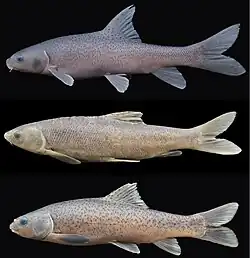 | Lateral view of some Paracapoeta species: From top, P. trutta; P. barroisi; P. erhani | |
