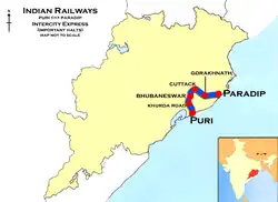 The 18413 / 18414 Paradeep-Puri Intercity Express is an express train belonging to Indian Railways-East Coast Railway zone that runs between Paradeep and Puri in India.[1]