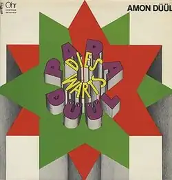 Paradieswärts Düül is the third album by the German band Amon Düül. With its careful songwriting structure, it sounded unlike any of the band's previous work.[2] In contrast to the communal, free-form improvisations of the earlier Amon Düül albums (generally thought to have all been recorded in a single "jam session" with various commune members coming and going throughout), Paradieswarts Düül was recorded with a smaller, more stable lineup of musicians. The pastoral, folk-influenced sound of the record has been compared to the gentler work of American bands Love and the Velvet Underground. The first word of the title is a German construction meaning "paradise-wards", as in "towards paradise".