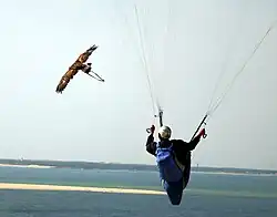 Parahawking is an activity that combines paragliding with falconry. Birds of prey are trained to fly with paragliders, guiding them to thermals.