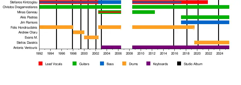 | Past members | Stefanos Kintzoglou Akis Pastras Giannis Koskinas Maxi Nil Jim Ramses Minas Ganeau Fotis Chondroudakis Thanazis Hatzaiagapis Elena Doroftei Georgia Grammatikou Claudia J. Marcela Buruiana Roula Mamalis Andrew Olaru Ionna Doroftei |