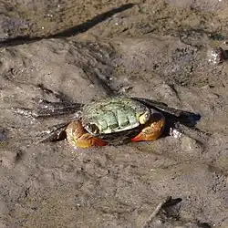 - ^ C. D. Schubart; D. Cannicci; M. Vannini; S. Fratini (2006). "Molecular phylogeny of grapsoid crabs (Decapoda, Brachyura) and allies based on two mitochondrial genes and a proposal for refraining from current superfamily classification". Journal of Zoological Systematics and Evolutionary Research. 44 (3): 193–199. doi:10.1111/j.1439-0469.2006.00354.x.