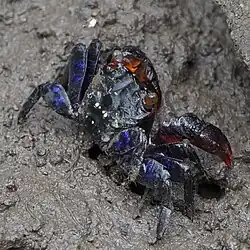 - ^ Shahdadi, Adnan; Schubart, Christoph (2018). "Taxonomic review of Perisesarma (Decapoda:Brachyura:Sesarmidae) and closely related genera based on morphology and molecular phylogenetics: new classification, two new genera and the questionable phylogenetic value of the epibranchial tooth". Zoological Journal of the Linnean Society. 182 (3): 517–548.
