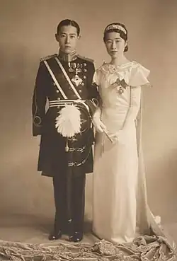 Yi U was adamant in marrying a Korean, and with Park Yeong-hyo's influence against Japanese politics, the Japanese royal court and Lee Wang-jik acknowledged the Yi U's and Park Chan-ju's marriage. Chan-ju's grandfather had pretended that the marriage with a Japanese noblewoman was withdrawn, and had gone to Tokyo to make use of his political, aristocratic, and personal connections to eventually have the acknowledgement of the engagement announced by the Japanese Imperial Palace on 11 July 1934.[3] On 17 April 1935,[4] Emperor Showa made a decree to acknowledge the marriage in which the wedding ceremony of the couple was held in Tokyo on 3 May 1935.[5] When the married couple returned to Keijō, they visited the Jongmyo Shrine and Neungwon, and held a ceremony at the Joseon Hotel and Unhyeongung Palace.[6] Their eldest son was born on 23 April 1936 and their second son was on 9 November 1940 in separate residences in Tokyo.