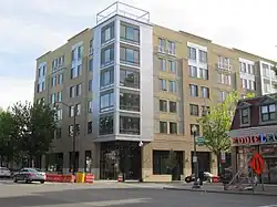 Building projects in Washington, including Georgia Avenue, stalled in 2010 due to the economy, but picked up again in 2011. In Park View, the resumption of development included Landex Corporation's The Avenue and Neighborhood Development Company's The Heights. The Avenue broke ground in April 2011 and was hailed as the first phase of the new Park Morton housing community.[35] The Avenue was designed as an 83-unit mixed-use apartment building. Located at 3506 Georgia Avenue, NW, the building contains 81,044 square feet of residential space and 2,388 sq ft (221.9 m2) of ground floor retail. It also includes a mix of one and two-bedroom apartment units. Residential space features a lounge, a fitness center, meeting rooms, and underground parking.[36] The building opened with an official ribbon cutting on September 21, 2012.[37]