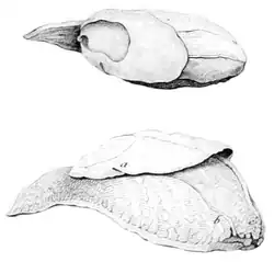 | Drawing of dorsal view and right lateral view of Parmacella olivieri from its type description by Georges Cuvier. | |