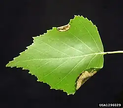 The larvae feed on Betula alleghaniensis, Betula grossa, Betula humilis, Betula obscura, Betula papyrifera, Betula pendula, Betula pubescens, Betula nana and Betula utilis. They mine the leaves of their host plant.[7]