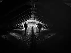 Notable architectural landmarks in Parque das Nações include the striking vaults on the platforms of Gare do Oriente, designed by Santiago Calatrava, which define his architectural style. The Pavilion of Portugal, by Portuguese architect Álvaro Siza Vieira, which has an entrance featuring an imposing pre-stressed concrete canopy, based on the concept of a sheet of paper resting on two bricks, opening up the space to the city to accommodate the various events that a space of this scale hosts.