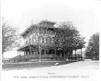In the early 1900s, the building housed the laboratory and offices of the Station's first entomologist, Percival John Parrott, during which time it became known as Entomology Hall. Parrott was known for his efforts to combat San Jose scale, an introduced insect that was severely damaging fruit crops in the early 20th century. He was appointed the station's director in 1938 and served until 1942, the year he retired. The building was renamed Parrott Hall in his honor.[5]