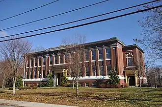 The Pascoag Grammar School, formerly known as Burrillville High School, is a historic school building at 265 Sayles Avenue in the Pascoag village of Burrillville, Rhode Island. The Colonial Revival-style school was built in 1917 by Thomas McLaughlin and Mahoney & Coffey to replace a school that had burned down. It is a T-shaped brick structure 2+1⁄2 stories high, with 15 bays across its main facade and a raised center entrance. It initially served as the town's high school, but a new high school was constructed in 1936, and this building was used strictly as an elementary school until it was closed in 1995. It sat vacant until 2005, when it was acquired by a developer and rehabilitated.[2]