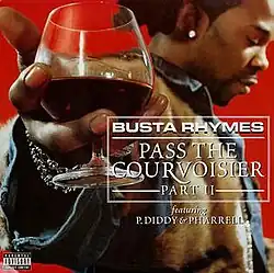"Pass the Courvoisier, Part II" is a song by American rapper Busta Rhymes featuring P. Diddy and Pharrell Williams. It was released on February 12, 2002, by Flipmode Entertainment and J Records as the fourth and last single from Rhymes's fifth studio album Genesis. The song is a continuation to an album track off of Genesis, also featuring P. Diddy.