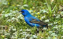 The genus Passerina was introduced by the French ornithologist Louis Pierre Vieillot in 1816.[1] The type species was designated in 1840 as the indigo bunting (Passerina cyanea) by the English zoologist George Robert Gray.[2][3] The genus name is from the Latin passerinus meaning "sparrow-like".[4]