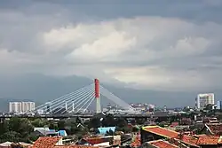 Pasupati Bridge or Pasupati Overpass (Indonesian: Jembatan Pasupati, Sundanese: ᮏᮨᮙ᮪ᮘᮒᮔ᮪ ᮕᮞᮥᮕᮒᮤ) is a bridge that connects the north and east of Bandung through the Cikapundung valley. It has a length of 2.8 km and a width of 30–60 m.[1] The road is built over Jalan Pasteur, which is a long street flanked by the palm trees that characterize the city of Bandung.[2] The bridge and overpass are known for their colorful display, particularly at night, which has become emblematic of Bandung as a whole.[3] The overpass and bridge connect to the main Cipularang Toll Road from Jakarta, and have greatly improved the traffic flow from the Greater Jakarta area into Bandung. Under the bridge, there is a park named Pasupati Park.